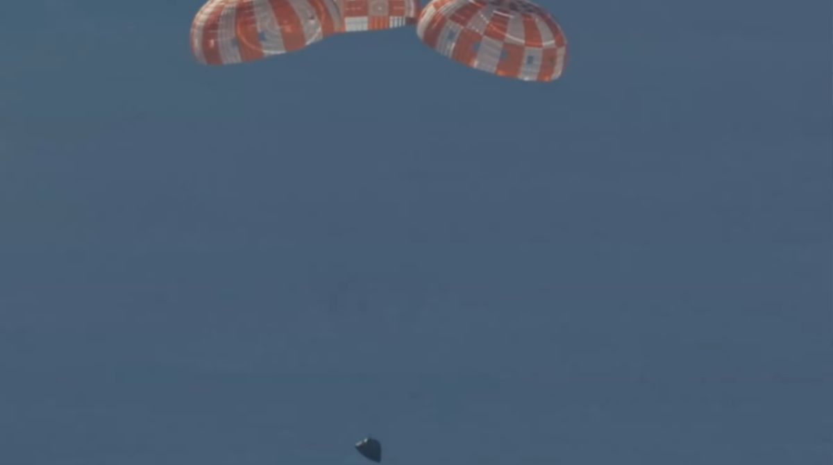 Após superar a fase crítica da reentrada, a cápsula acionou seu sistema de paraquedas em etapas. Inicialmente, dispositivos de estabilização desempenharam um papel fundamental no controle da trajetória da cápsula. Em seguida, três paraquedas principais foram abertos, reduzindo significativamente a velocidade da Orion e possibilitando um impacto controlado na superfície do oceano. O pouso foi realizado sem incidentes graves, marcando o fim de uma missão histórica.