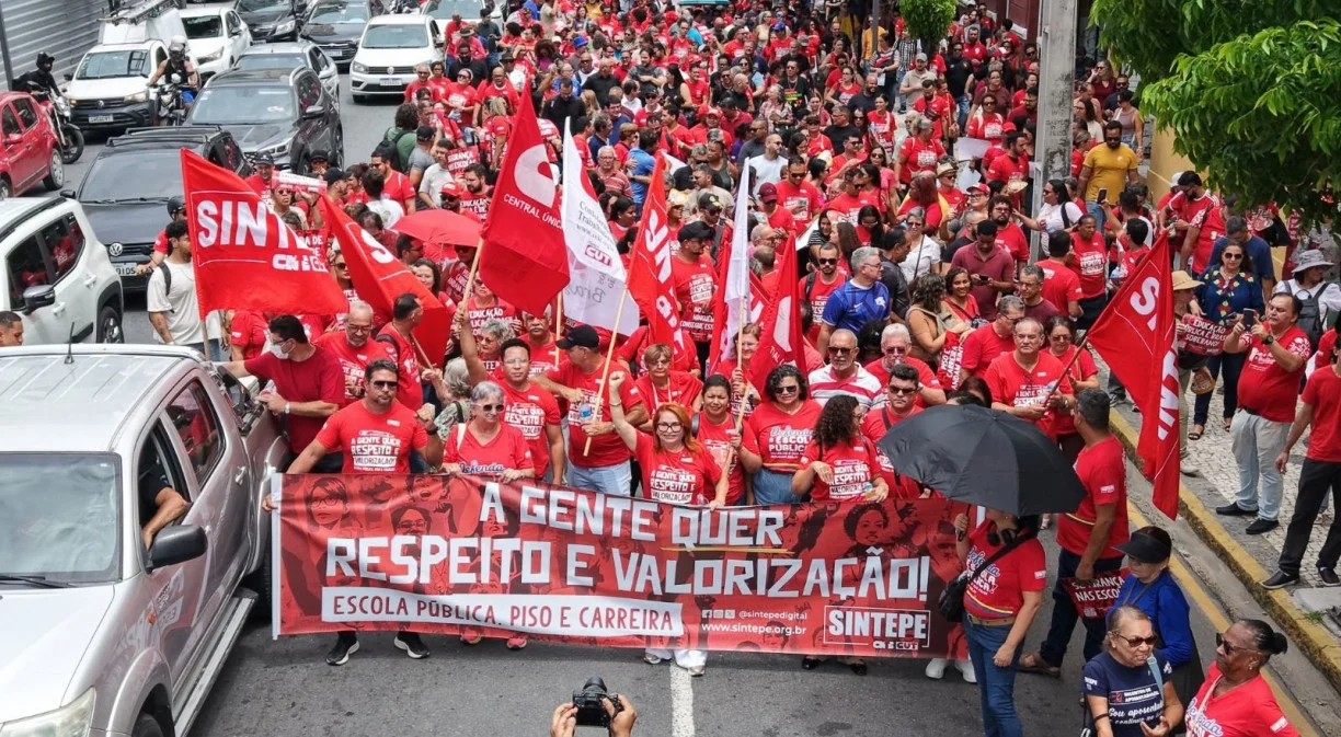 No último dia 5 de março, professores e profissionais da educação de Pernambuco decidiram, em assembleia geral, que realizarão uma paralisação total das atividades no dia 10 do mesmo mês. O encontro aconteceu em frente à Assembleia Legislativa de Pernambuco (Alepe), impulsionado por um ato promovido pelo Sindicato dos Trabalhadores em Educação de Pernambuco (Sintepe). Após a assembleia, os participantes marcharam até o Palácio do Campo das Princesas, onde reiteraram a importância da mobilização.